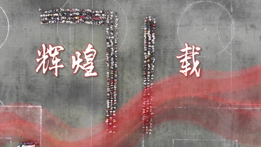 升旗仪式后,2138CC太阳集团师生在国旗下同唱一首歌《我和我的祖国》,以特殊的方式向伟大祖国表达崇高敬意与无限祝福,为新中国71华诞献礼。随后,450多名学生在表演区整齐的排列成方块队,期间变化“71”为字样图案。伴随着悠扬的音乐,大家共同挥舞着手中的国旗,一起放声歌唱《我和我的祖国》,在同一首歌的旋律下,共同向祖国深情表白,礼赞伟大祖国,绽放爱国激情。