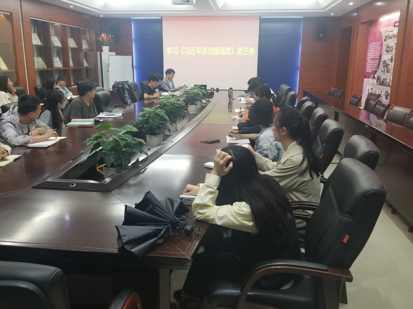 9月25日下午,本科生二支部全体党员在01215会议室组织学习《习近平谈治国理政》第三卷,会议由支部书记宁乃向主持。