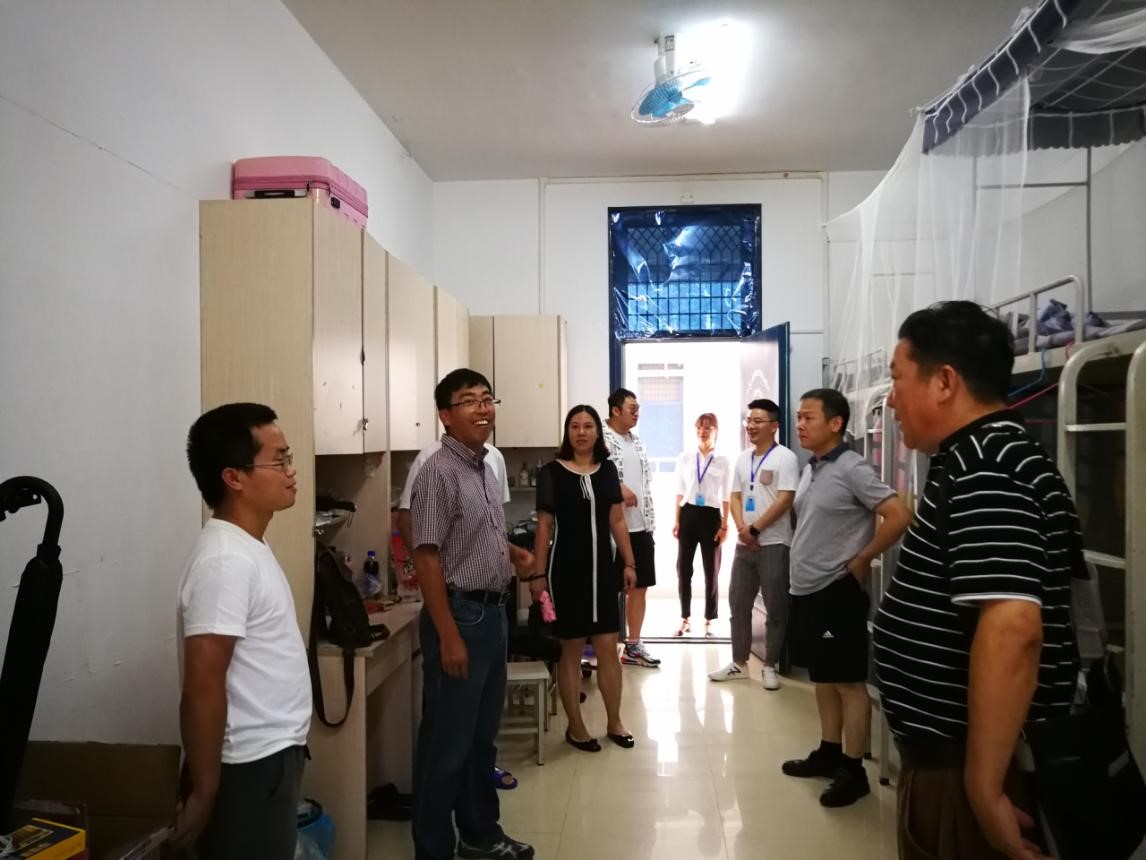 新学期伊始,为了解同学们的返校及学习生活情况,8月30日下午,2138CC太阳集团党委书记曹文献、常务副院长熊彬、党委副书记陶剑飞、副院长吕玉增带领各年级辅导员及班主任走访了学生宿舍,深入了解学生们的到校情况和学习生活情况,并带去学院的关心和问候。
