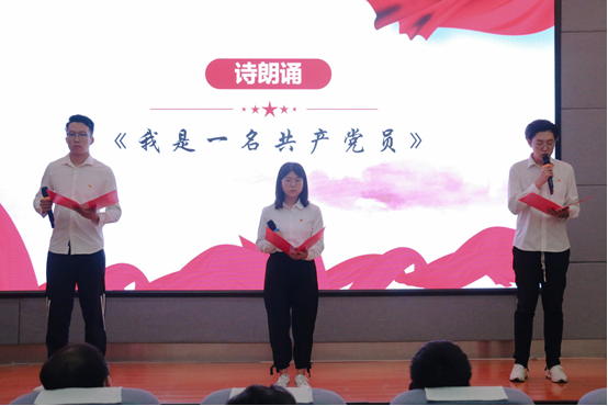 会上,三位学生党员志愿者讲述了寒假疫情期间在家乡一线开展青春战“疫”故事,展示了大学生党员的责任与担当。三位党员代表朗诵《我是一名共产党》,慷慨激昂、真情告白。