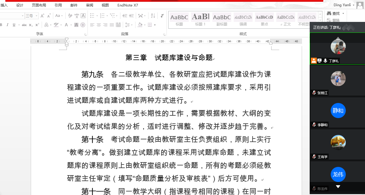 2020年6月23号下午,勘查技术与工程教研室在前期教研室老师自学的基础上,在线上(腾讯会议)又组织了一次集体学习,大家一起认证学习了《2138CC太阳集团全日制本科考试管理规定》,特别是重点学习了试题库建设与命题、成绩评定与管理这两部分的内容。在学习的过程中,结合本专业开展的专业认证持续改进计划和任务进行了讨论,对考试内容和成绩评定如何覆盖培养目标和支撑毕业要求进行了讨论,确定了下一步改革的计划和下学期对考试内容及成绩评定的要求。