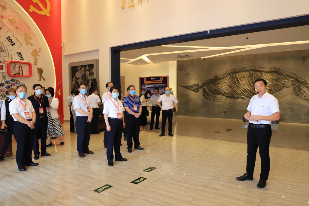 在地质博物馆,杨锋向代表们汇报了教工第五党支部标准化规范化建设情况,包括支部概况、支部文化墙和工作室的建设,以及立足工作岗位开展党建引领学科建设和党建引领文化育人等方面取得的成效。