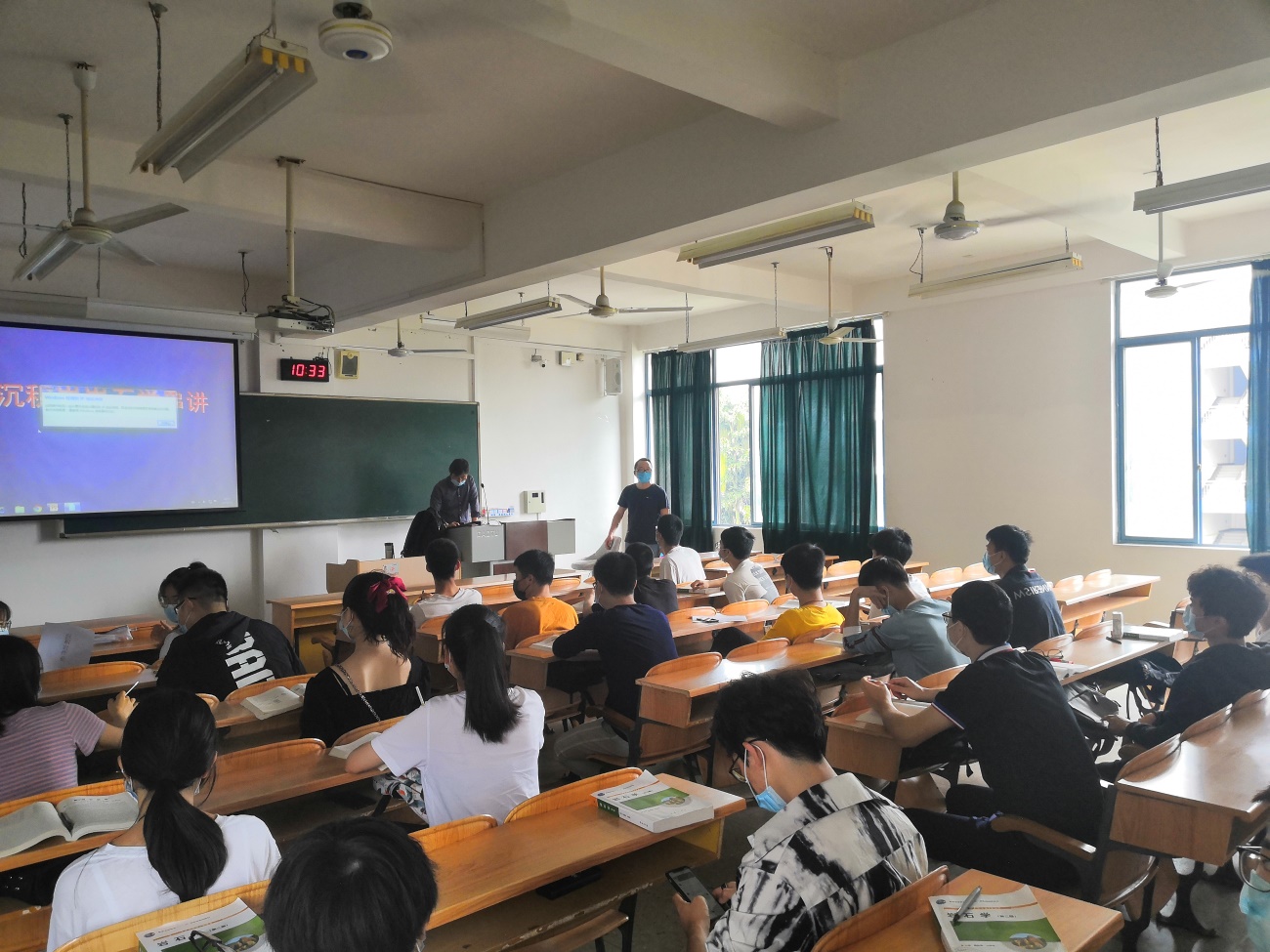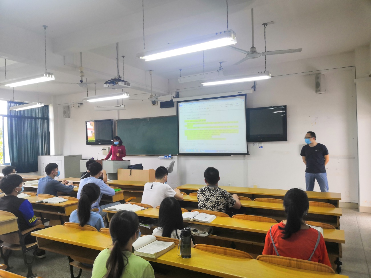 检查过程中,督导成员与任课教师及学生进行了沟通交流,对疫情防控期间的防疫措施提出了具体要求,严格落实隔空就坐,严肃课堂考勤等。整体上看,教学运行正常,秩序稳定。任课教师教学态度认真,自觉遵守教学纪律,普遍提前五到十分钟进入教师,并组织学生有序进入,课前准备充分;学生出勤率高,无迟到早退等现象,课堂纪律良好。