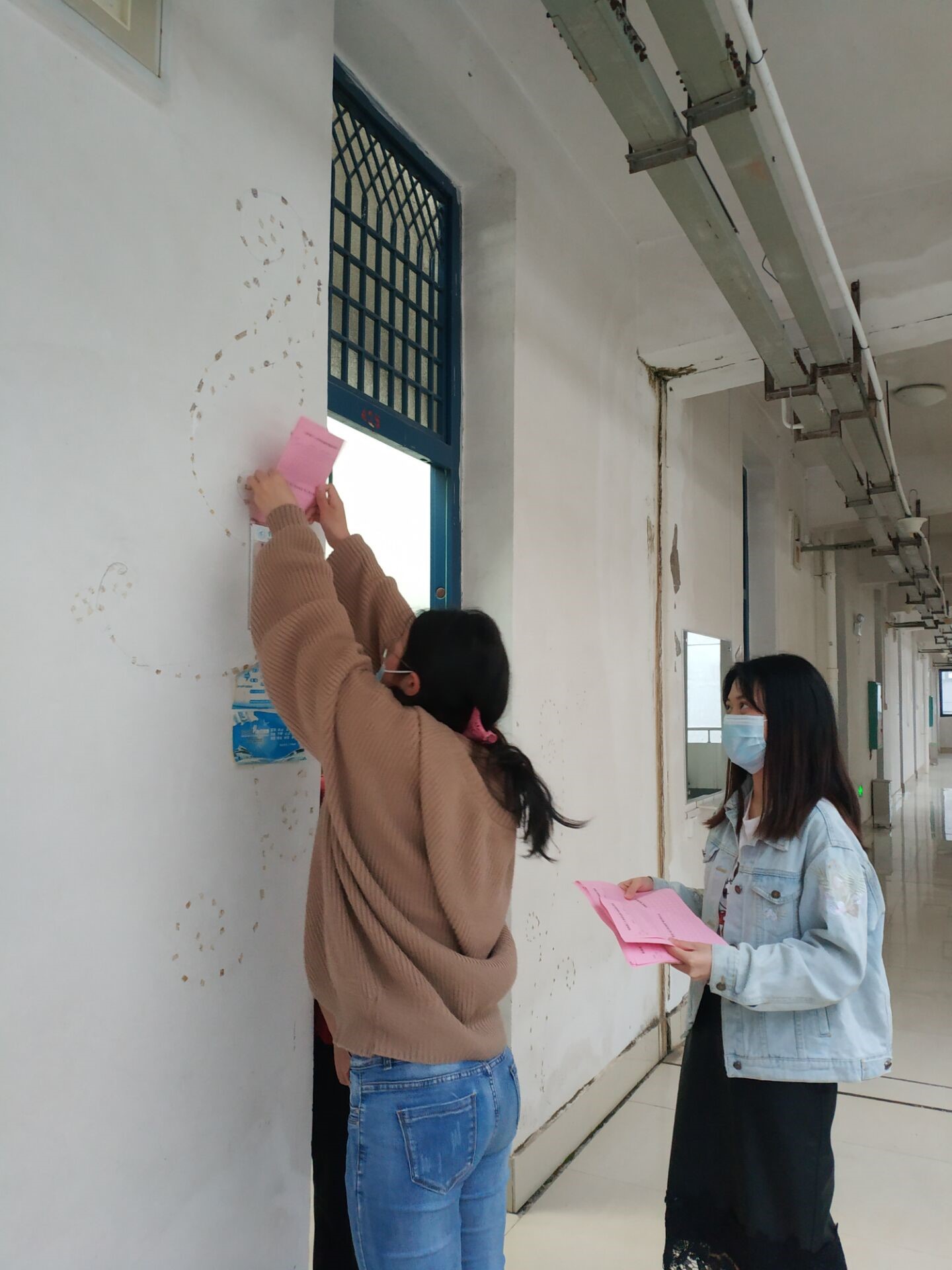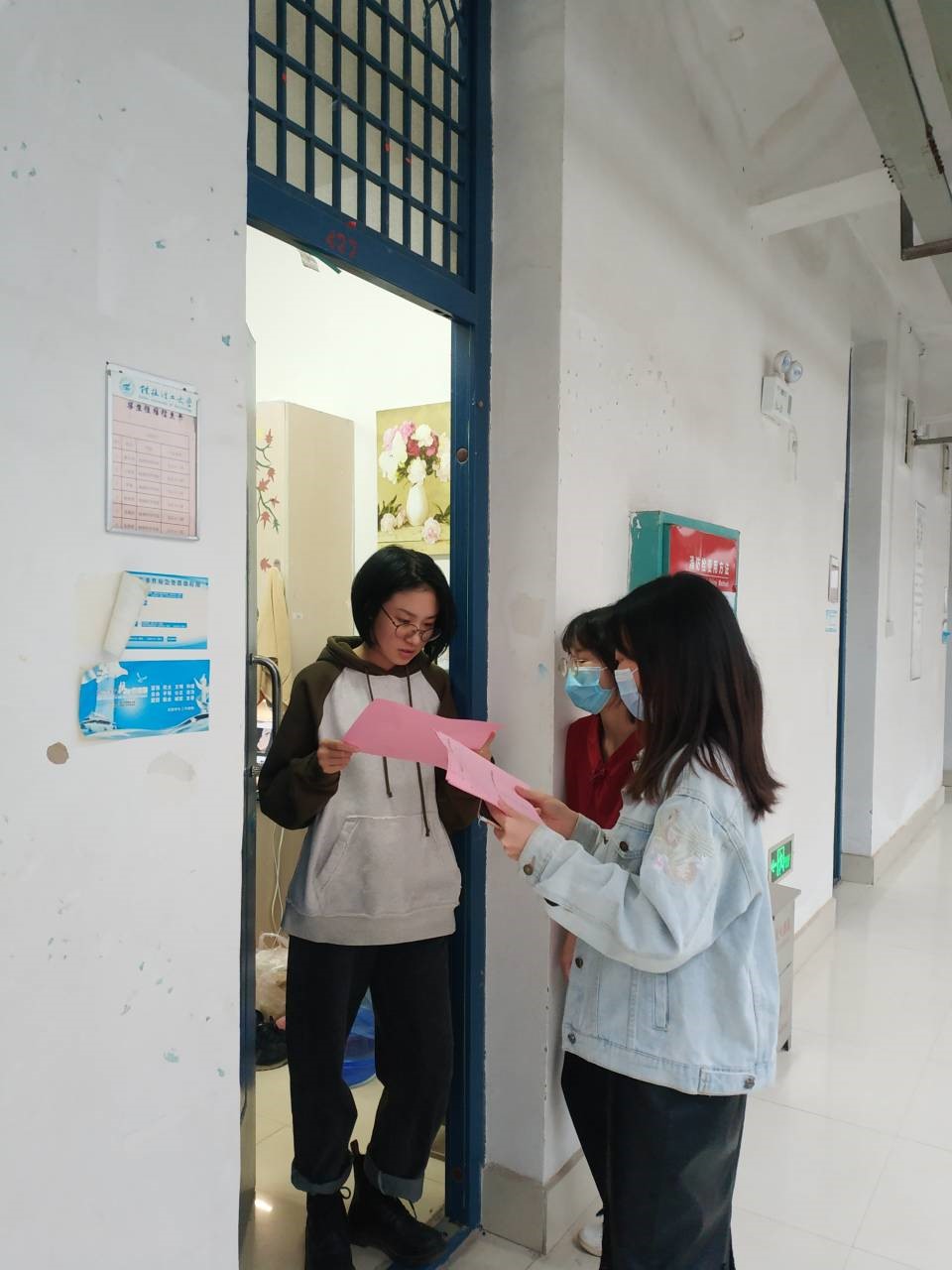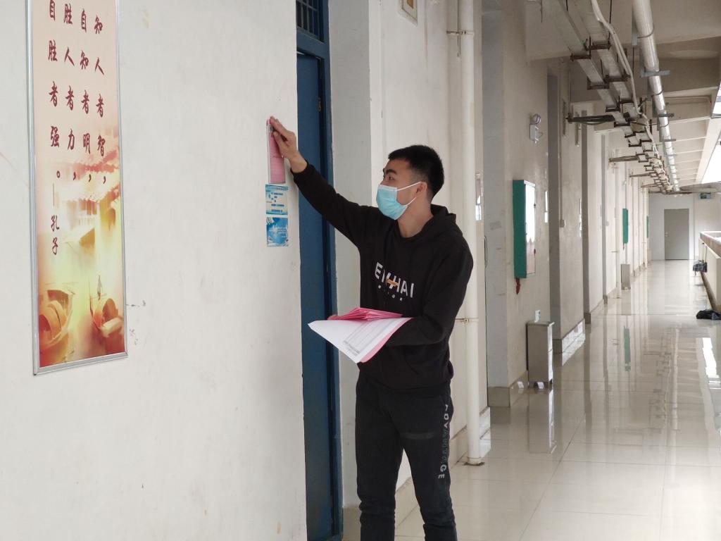 2020年4月21日下午,在地学院党委的安排下,学生党员志愿者到宿舍区进行学生晨午检体温记录表及宿舍“每日清洁制度”情况落实表的张贴和宣传工作。