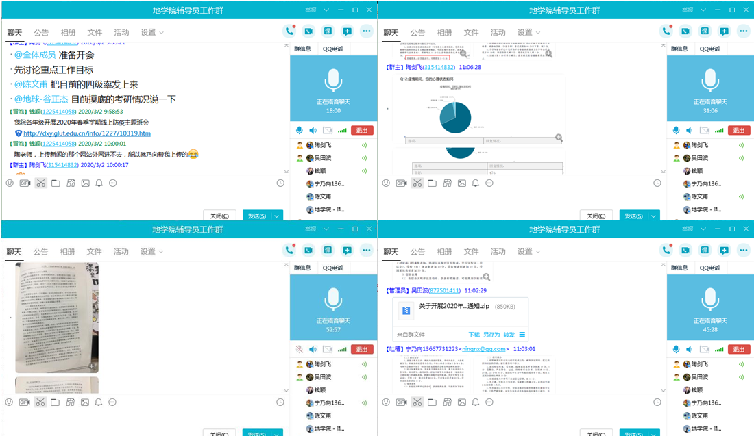 2020年3月2日上午,2138CC太阳集团党委副书记陶剑飞和学工办各年级辅导员老师通过QQ群开展线上语音会议。会议的主要内容为学院学风建设以及共青团相关的工作等。