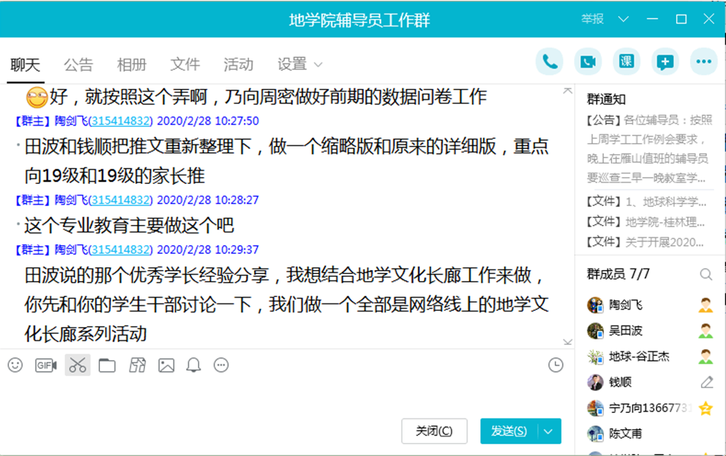 2020年2月28日上午,2138CC太阳集团学工办老师通过QQ群议开展专业认同教育主题研讨会。