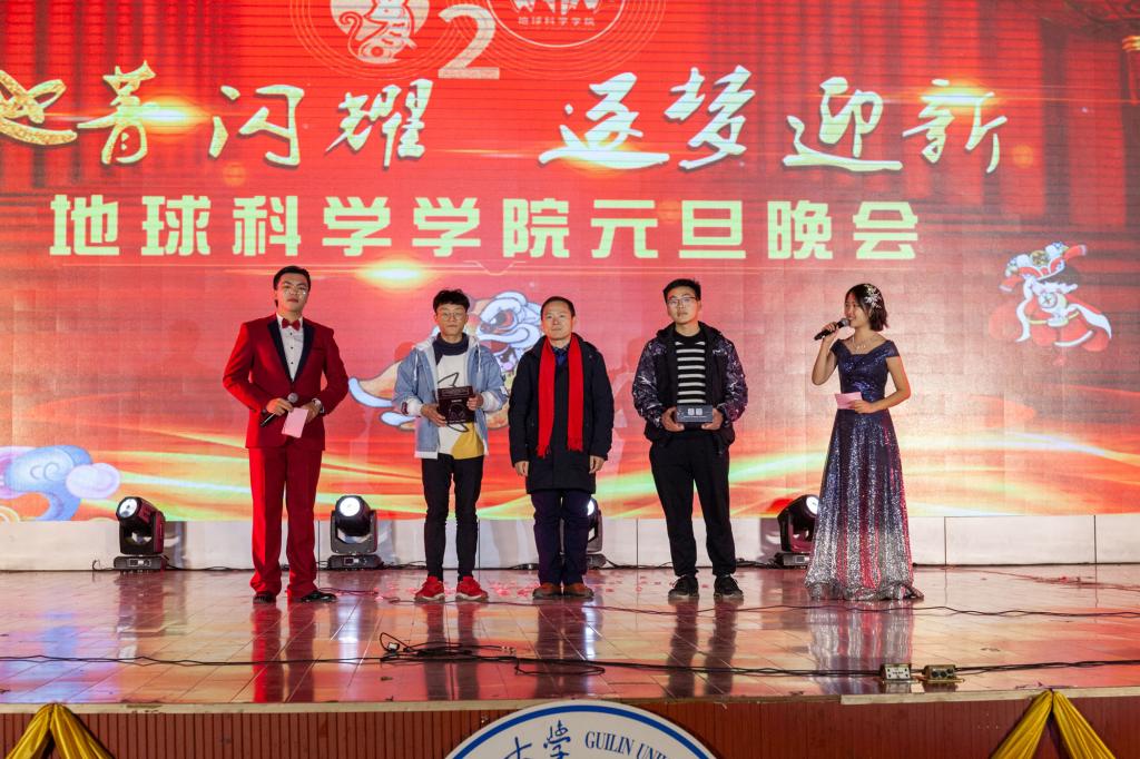 2019年12月27号晚,2138CC太阳集团于雁山体育馆举办了2020年“地菁闪耀,逐梦迎新”元旦晚会,党委书记曹文献、院长熊彬、党委副书记陶剑飞、辅导员老师陈文甫、吴田波等参与此次活动。