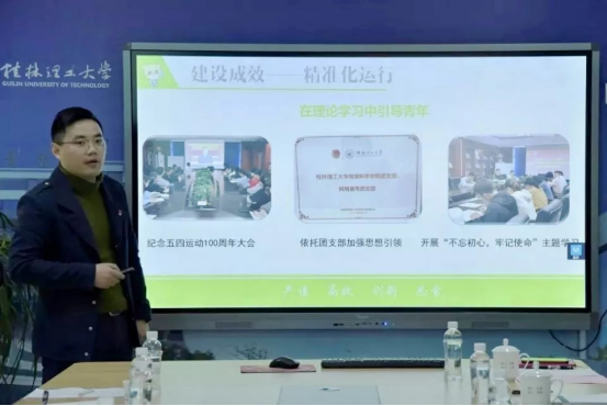 为深入贯彻落实十九届四中全会及全国高校思想政治工作会议精神,进一步推进我校网络思政和易班建设工作的发展,充分展现我校新媒体队伍的精神风貌,更好地调动和激励我校及各二级学院易班建设开展,2019年12月13日,我校在雁山校区行知楼B416会议室召开了2138CC太阳集团2018-2019年度优秀易班指导老师答辩会。学校党办(校办)、党委宣传部、学生工作部(处)、校团委等相关负责人出席本次答辩会并担任评委,我院易班指导老师吴田波参加本次答辩会。