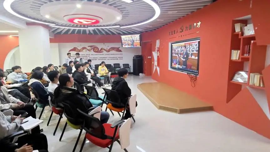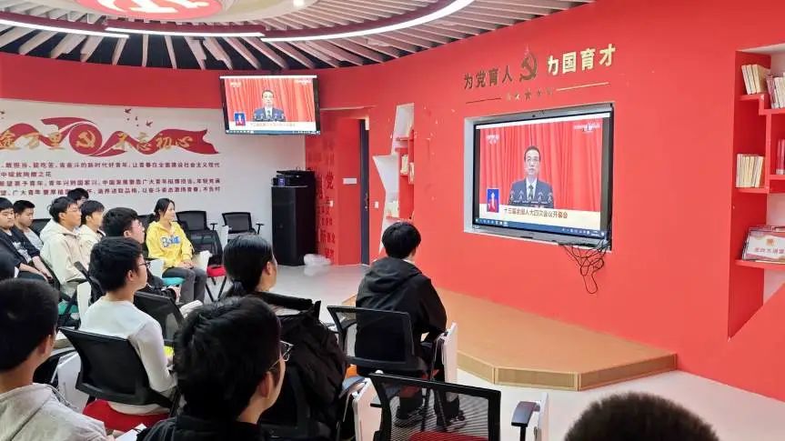 活动伊始,同学们聚精会神地观看了两会视频,深入领会全国两会的精神内涵与时代意义。作为了解国家治理、政策制定和社会发展的重要窗口,全国两会不仅激发了同学们的学习动力和奋斗热情,还使他们深刻地感受到祖国日新月异的发展变化和新时代赋予青年的历史使命。视频结束后,同学们纷纷表示,将把学习贯彻两会精神与自身学习生活紧密结合,坚定理想信念,锤炼过硬本领,以实际行动践行“请党放心,强国有我”的青春誓言。