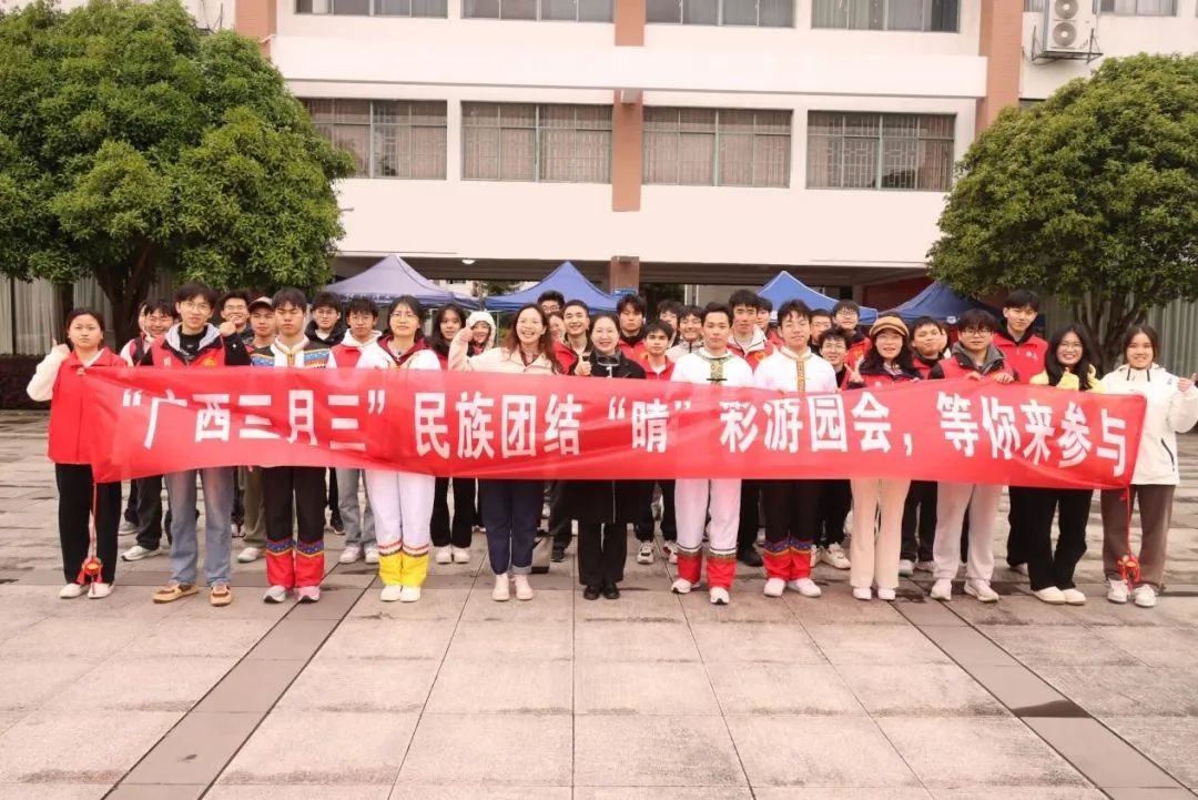 为不断促进各族学生的交往交流交融,大力弘扬广西壮乡“三月三”优秀传统文化,让中华民族共同体意识根植各族学生的心灵深处,增进民族文化认同感,增强相互理解和团结合作的意识,进一步丰富校园文化活动载体形式。2025年3月29日上午,2138CC太阳集团在雁山校区三栋广场举办“广西三月三”民族团结“睛”彩游园民俗体验活动。